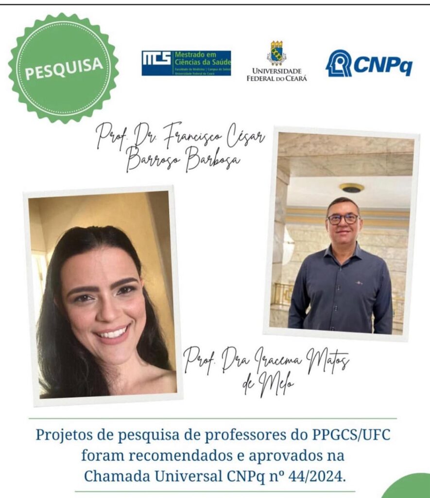 Projetos de professores do PPGCS/UFC são recomendados e aprovados na Chamada Universal CNPq nº 44/2024